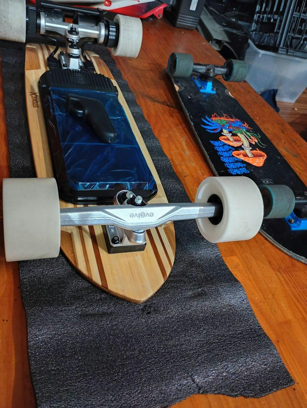 The Stoke X now accommodates larger street wheels, and we’ve made the iconic Evolve 97mm urethane wheels standard for the Stoke X board, providing maximum roll speed for cruising, carving and going FAST!