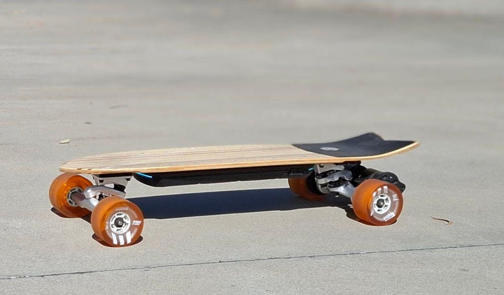 We also love the Stoke X for its traditional skate experience as the deck has the kick tail and a new pinstripe inlay deck and is more street-focused. The pinstripe features on this new deck design have certainly been inspired by the first Evolve boards ever made, which were the Pintail and Snubnose series. Constructed with an additional fibreglass layer, the deck now offers the stiffness needed to handle the increased power output, capturing the surf-inspired vibe of the Stoke, but with a lighter, more modern aesthetic. It’s all about that sleek, classic look while giving you the performance edge.  With laser-etched logos, a foam kickball pad, and a solid sheet of clear grip tape as opposed to the spray-on grip previously used on the original Stoke boards - you’ll have more control than ever before.