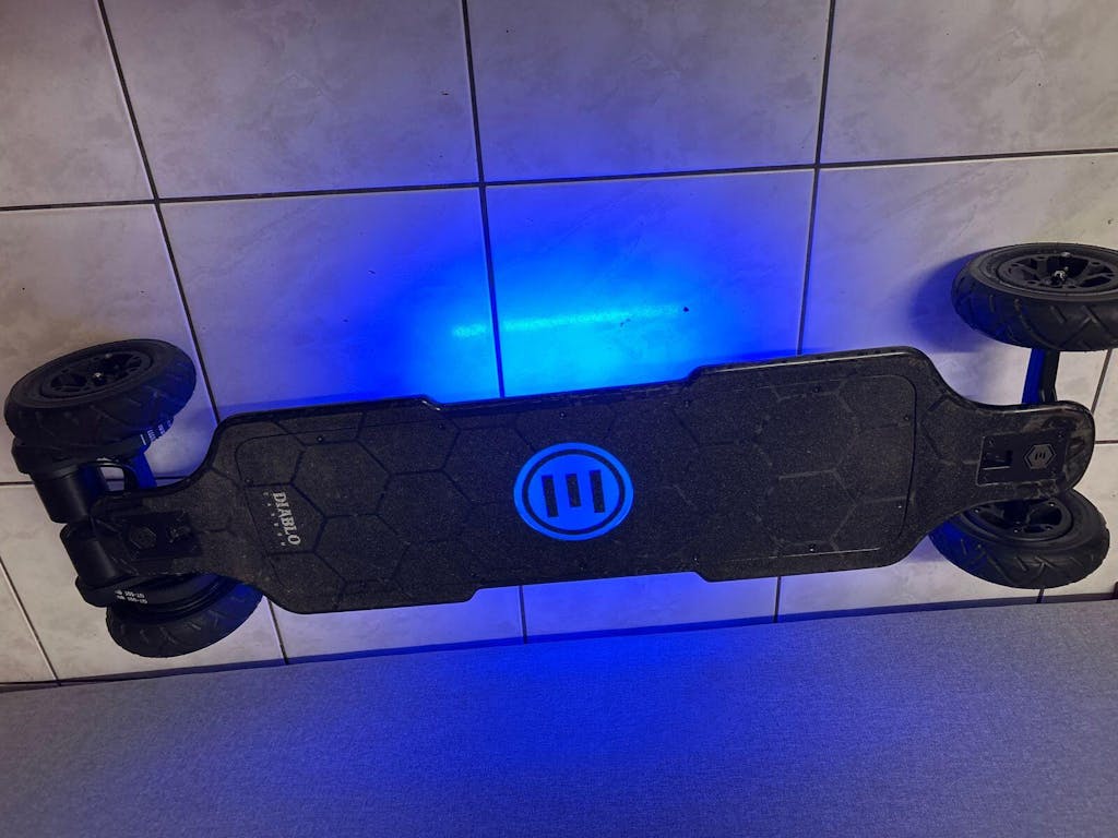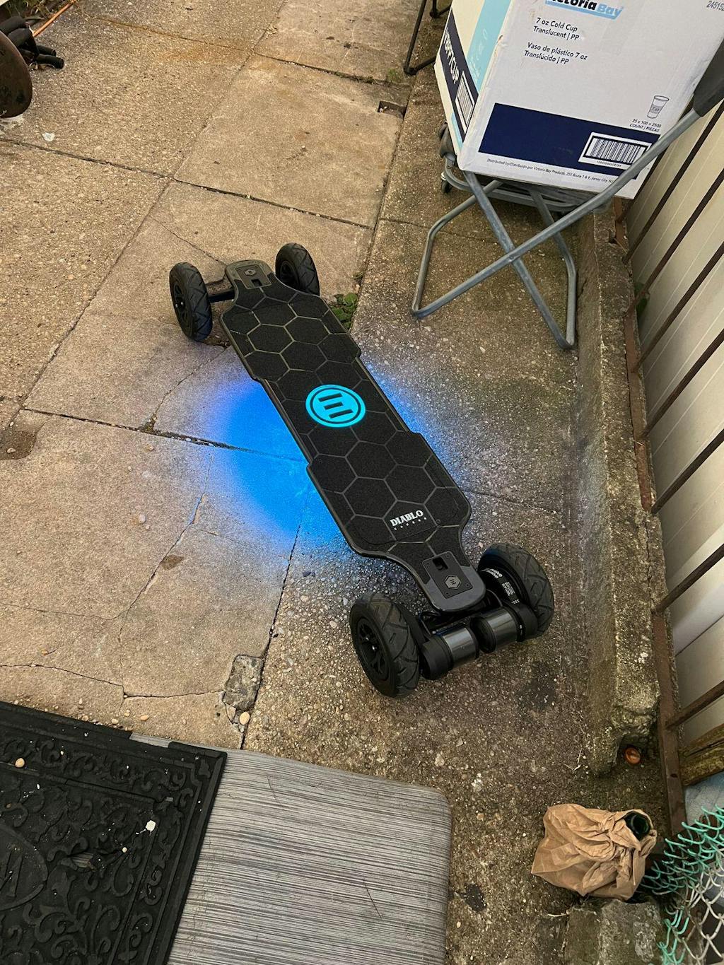 Introducing the Diablo Carbon 2-in-1, the ultimate electric skateboard that adapts to your terrain preference with interchangeable wheel setups—street wheels for urban speedsters or all-terrain wheels for off-road adventurers. Engineered for versatility and uncompromising performance, this board features a forged carbon fiber deck that balances strength and agility, ensuring a smooth and stable ride regardless of the terrain.